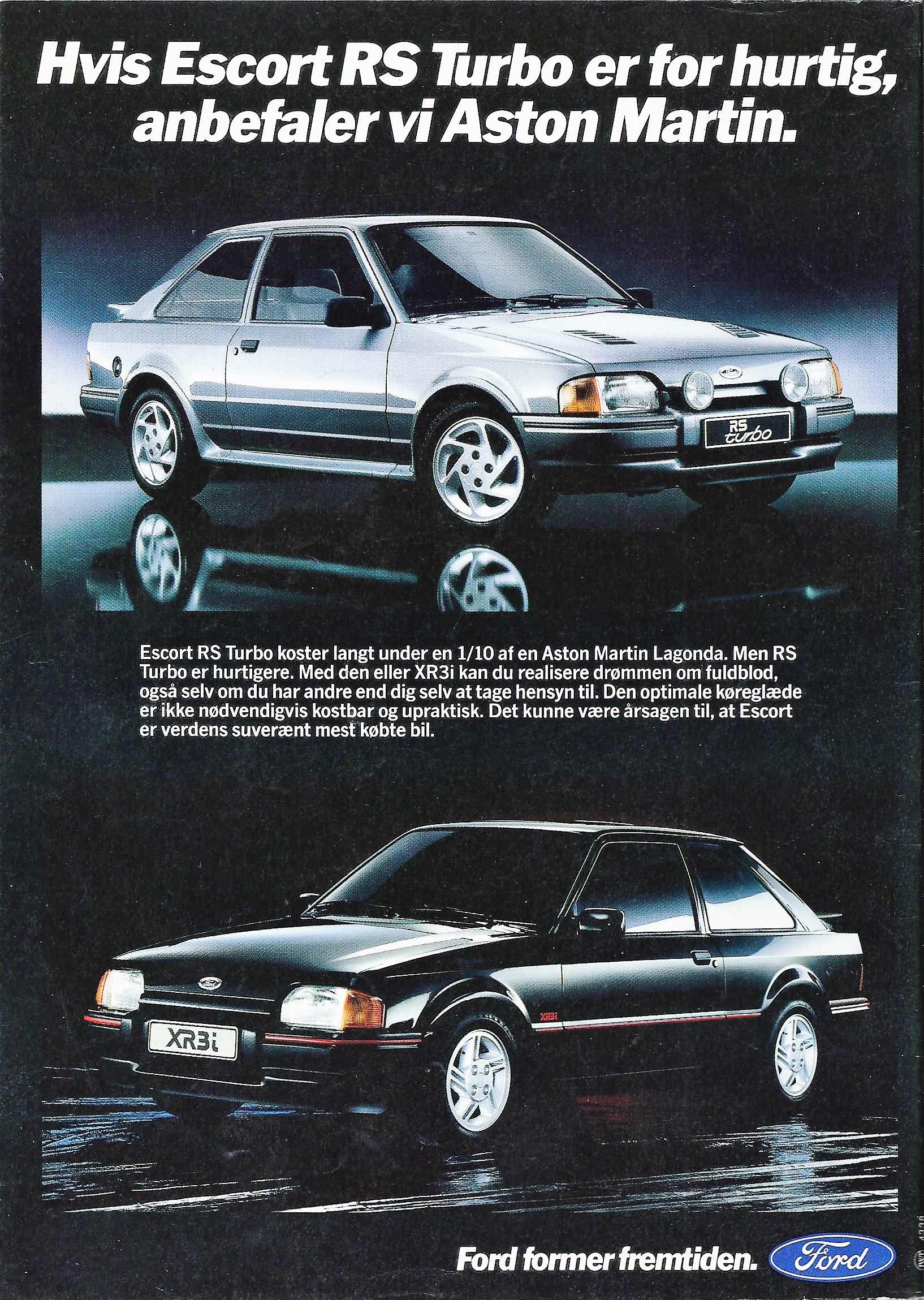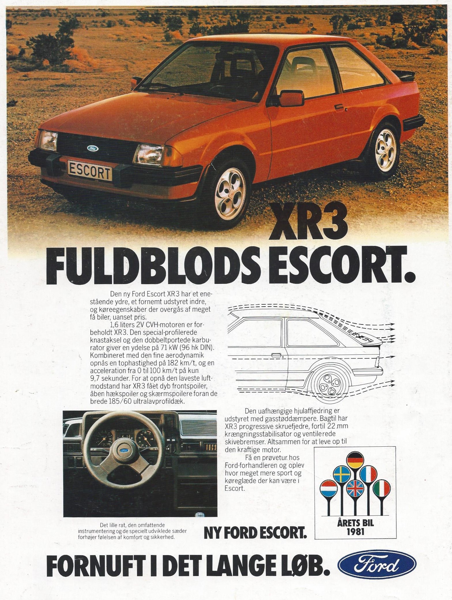 ”Escort XR3i kører godt. Den er klassens måske letteste sådan lige at hoppe ind i og køre stærkt – lige med det samme. Den er i god balance på vanskelige stræk – og også på bane klarer den sig godt. […] Førerpladsen er værd at trække frem – for hvor den bil dog er lækker at hoppe ind i.”